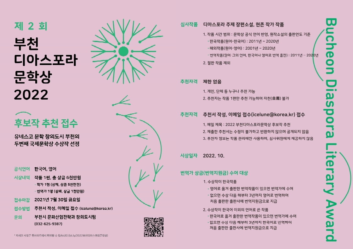 | 제목 | 제2회 부천 디아스포라 문학상 2022 후보작 추천 접수 | ||||