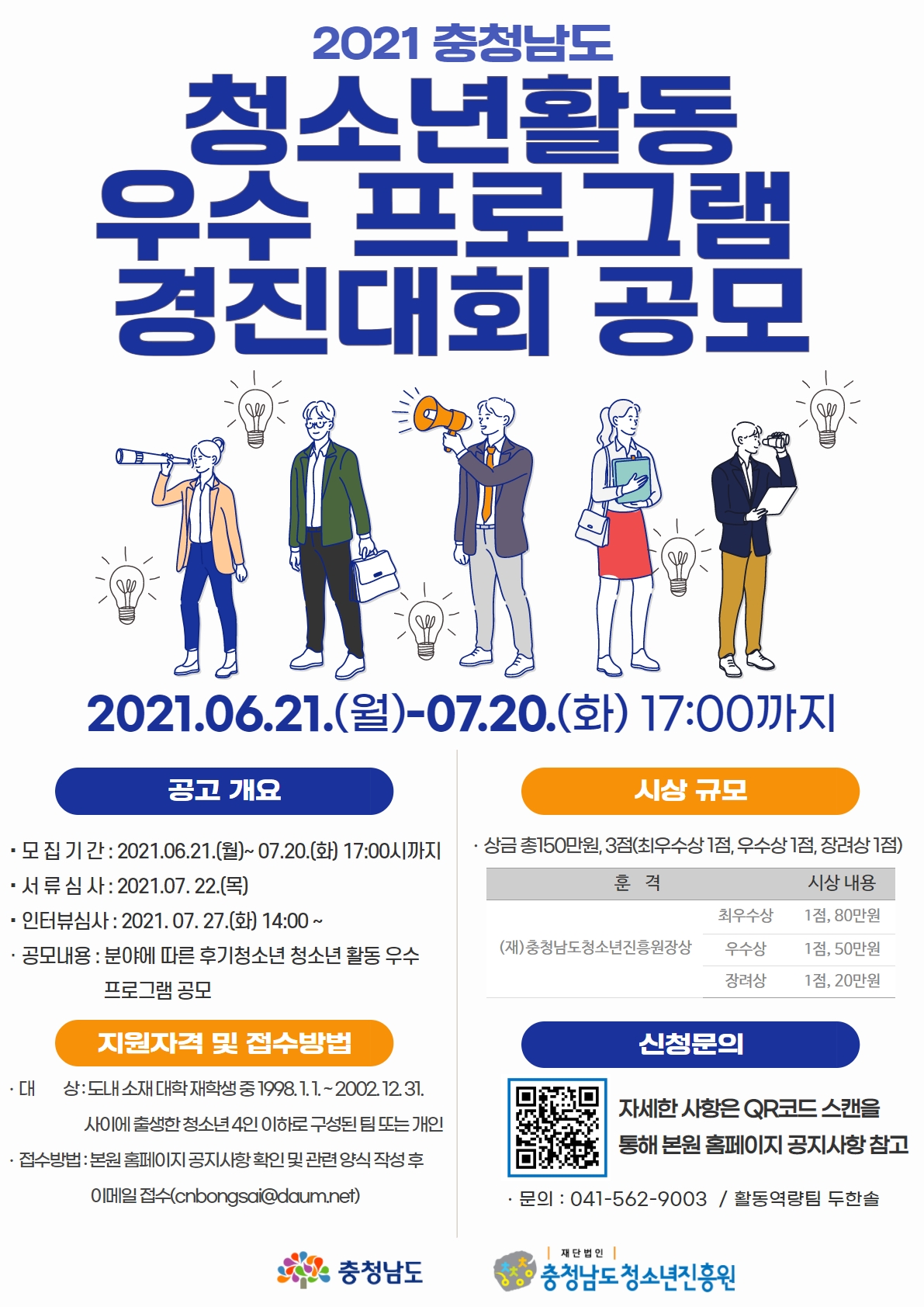 | 제목 | 충청남도 청소년활동 우수 프로그램 경진대회 공모 안내 | ||||