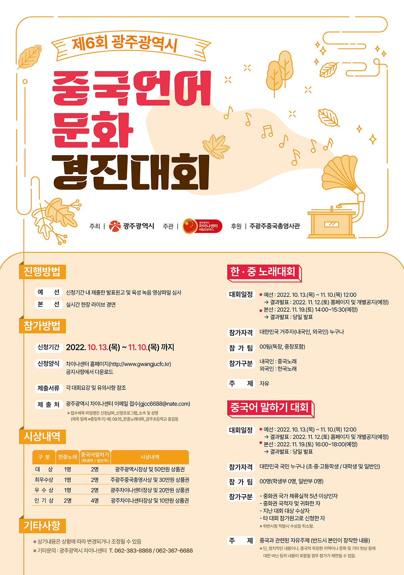 | 제목 | 제6회 광주광역시 중국언어문화 경진대회 안내 | ||||