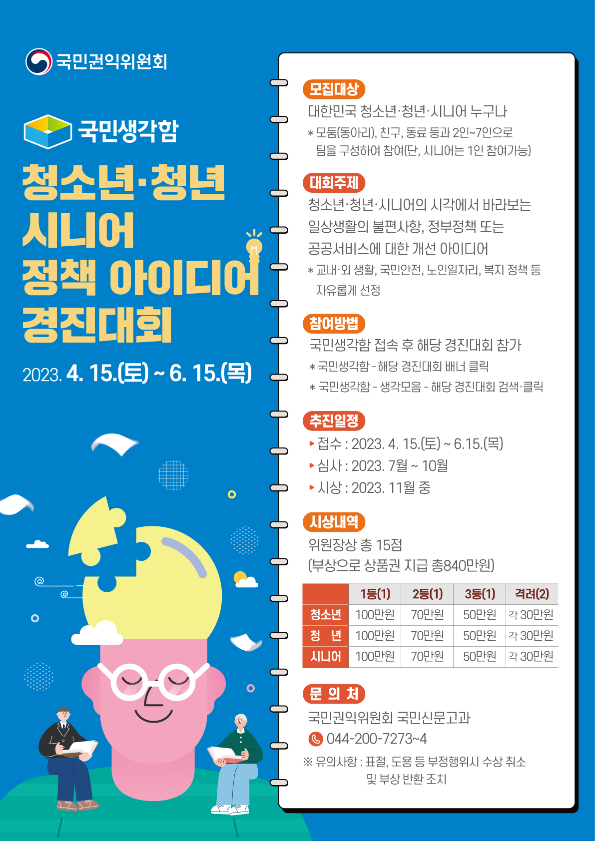 | 제목 | 「2023년 국민생각함 정책 아이디어 경진대회」 참가 안내 | ||||