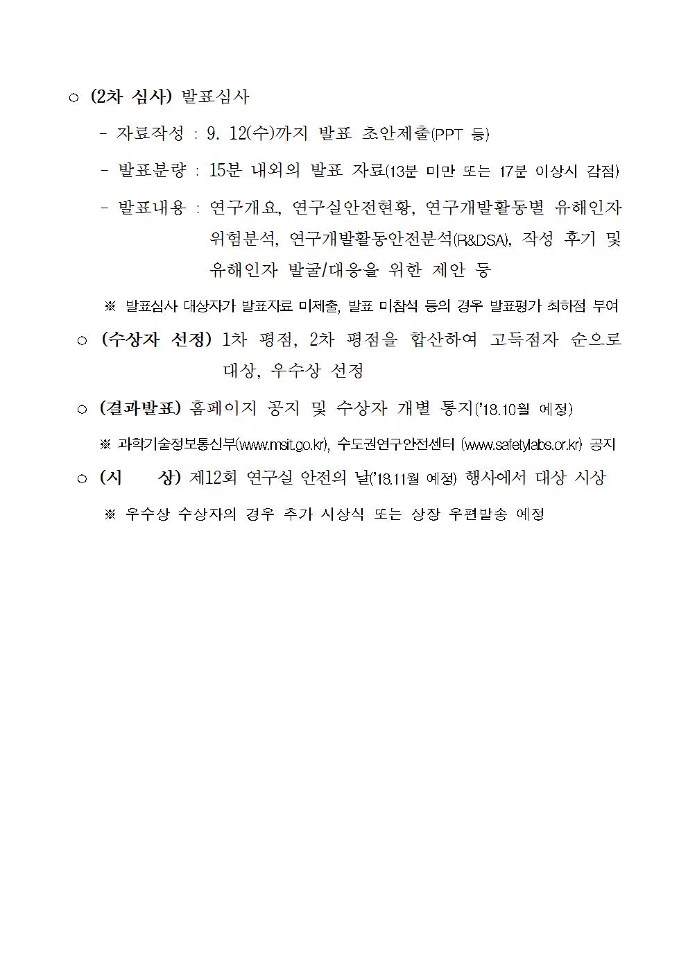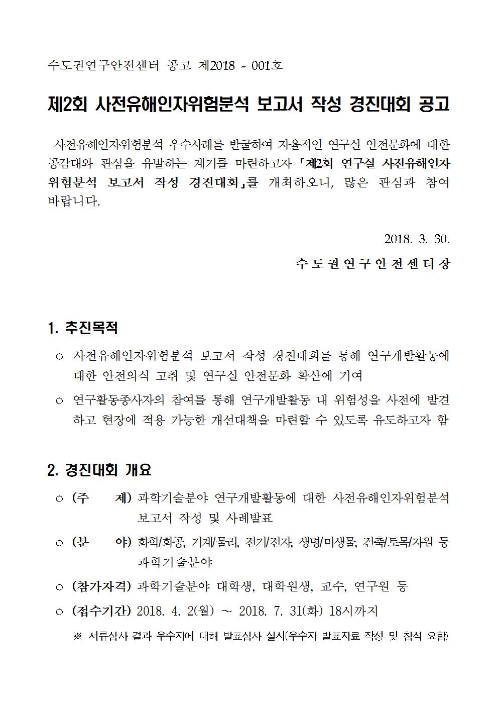 | 제목 | 제2회 연구실 사전유해인자위험분석 보고서 작성 경진대회 안내 | ||||