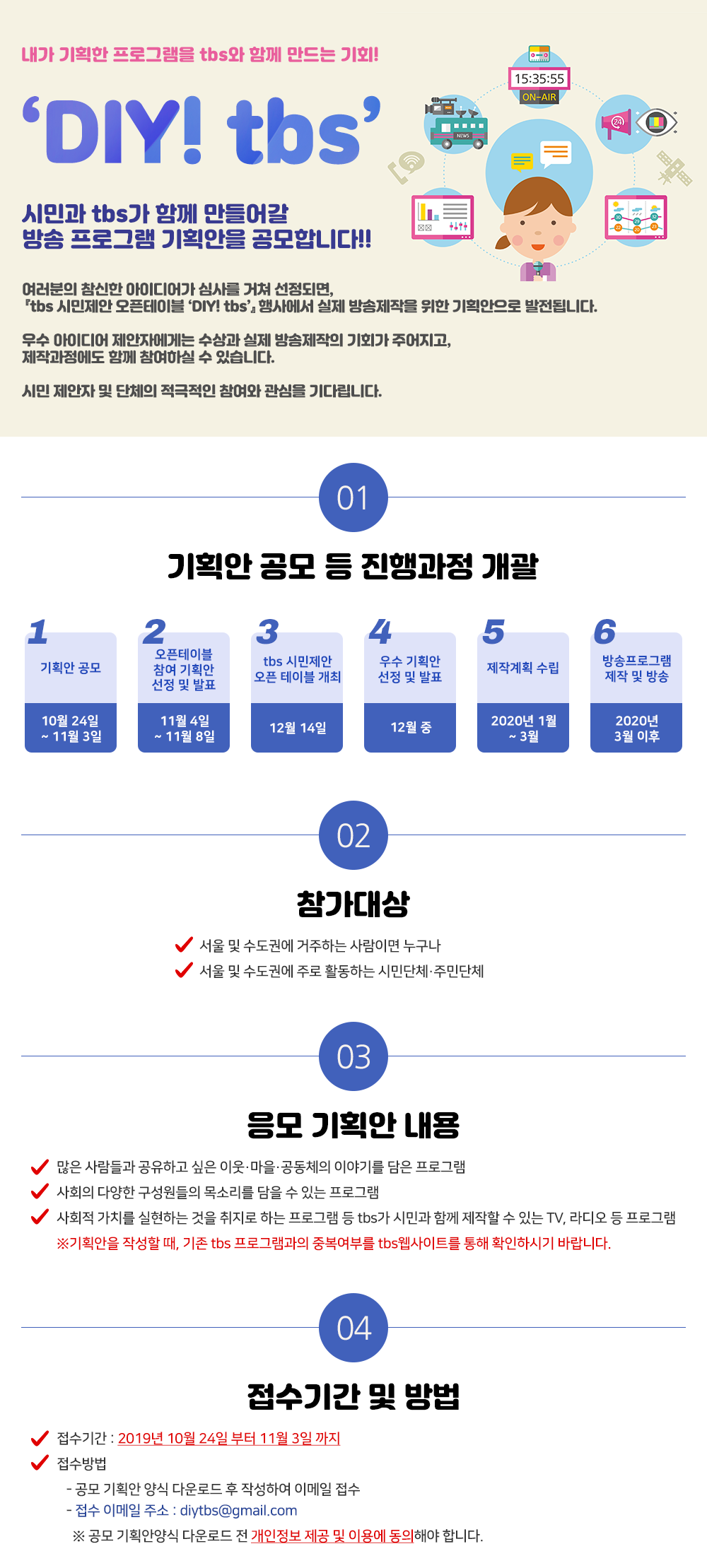 | 제목 | 시민제안 방송 프로그램 기획안 공모「DIY! tbs」안내 | ||||