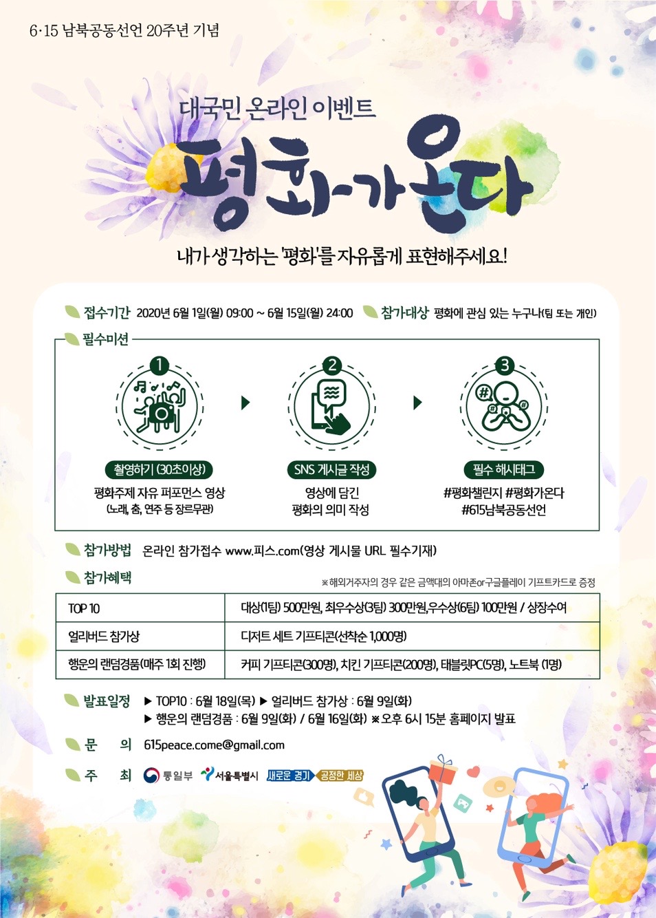 | 제목 | 6.15 20주년 기념 대국민 온라인 이벤트 「평화챌린지」 안내 | ||||