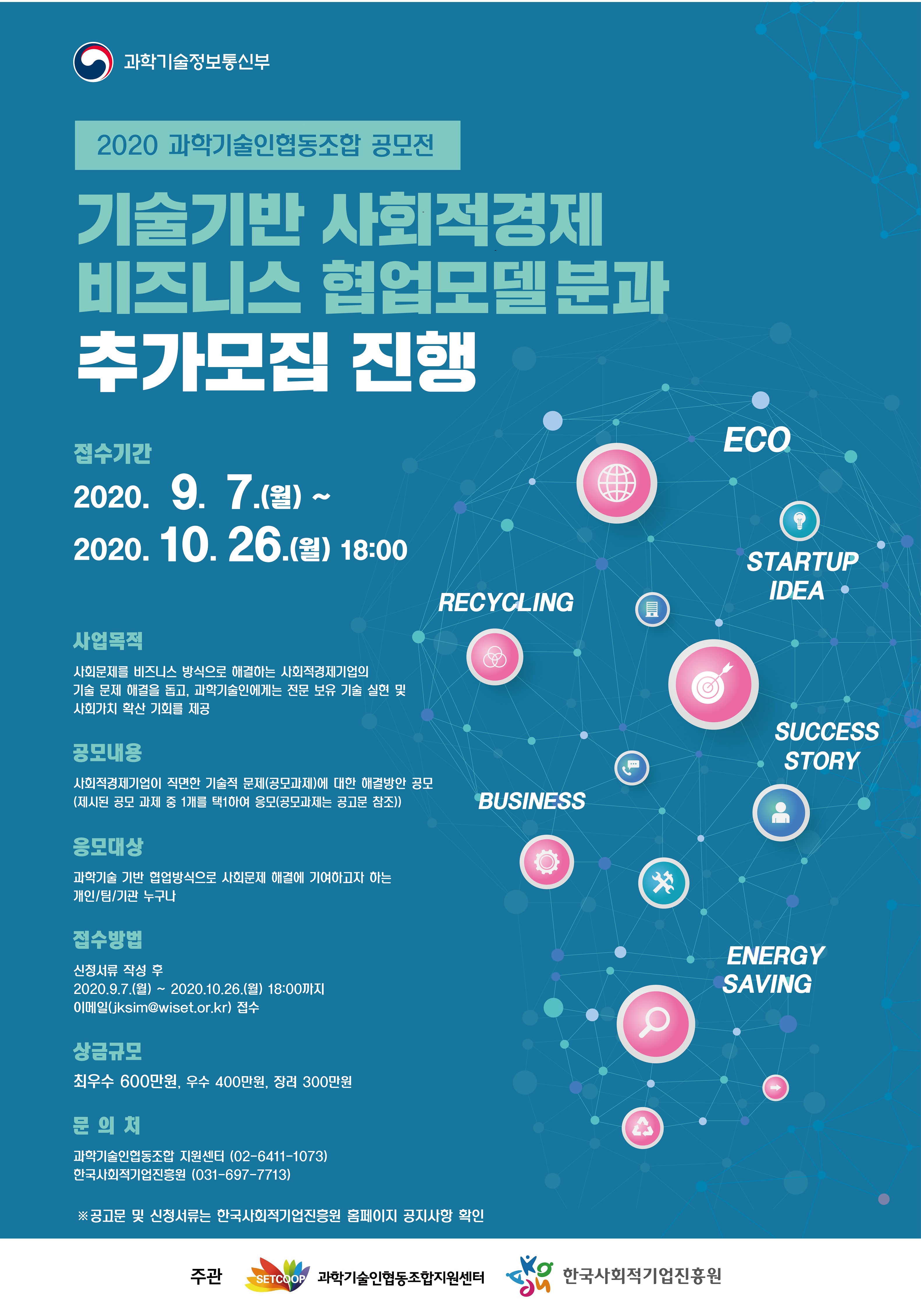 | 제목 | 기술기반 사회적경제 비즈니스 협업모델 공모전 안내 | ||||