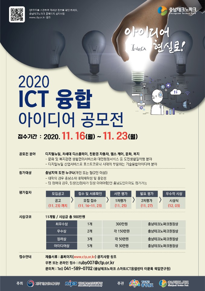 | 제목 | 2020년 충남ICT융합 아이디어 공모전 개최 안내 | ||||