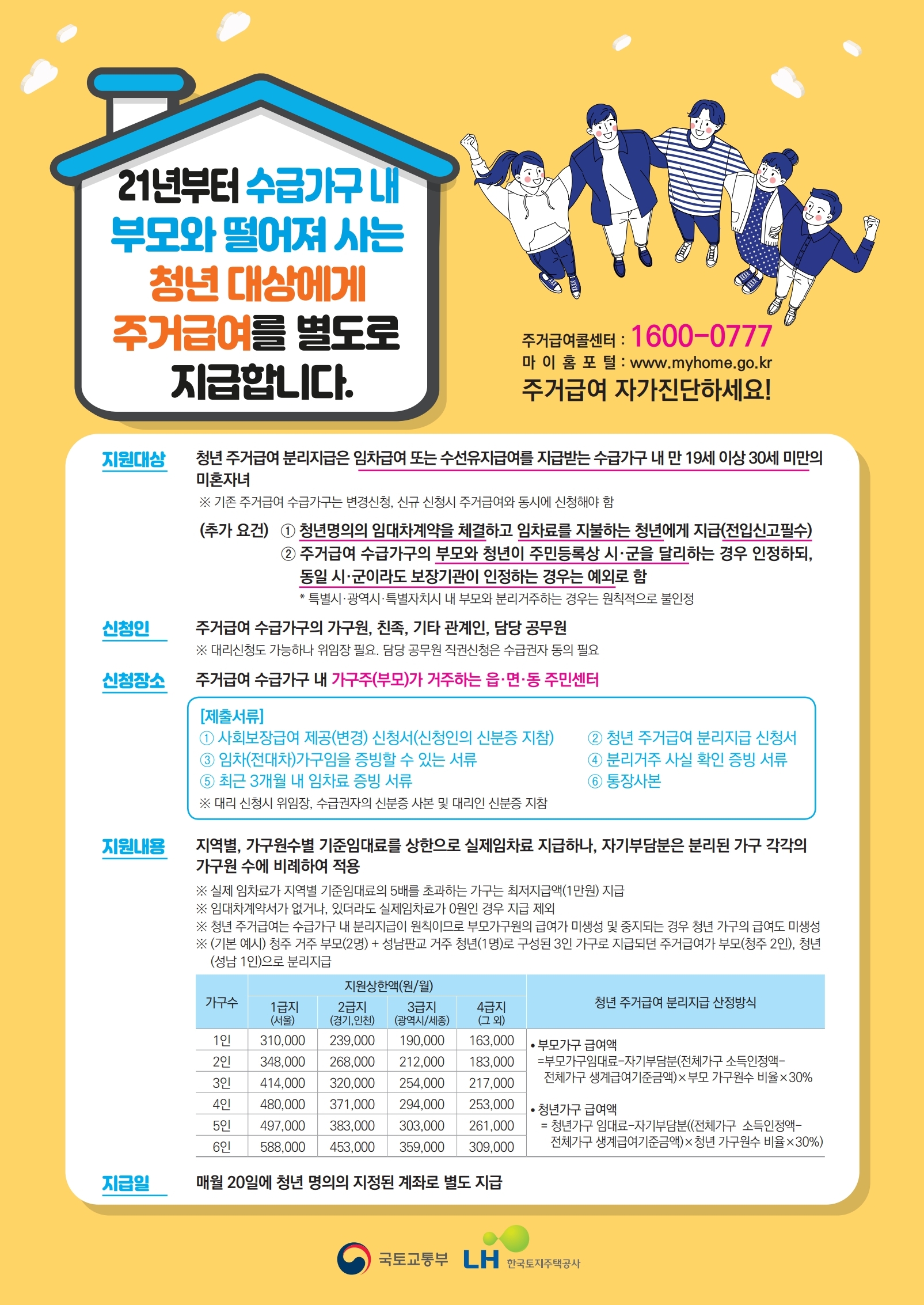 | 제목 | 국도교통부 청년 주거급여 분리지급 사업 안내 | ||||