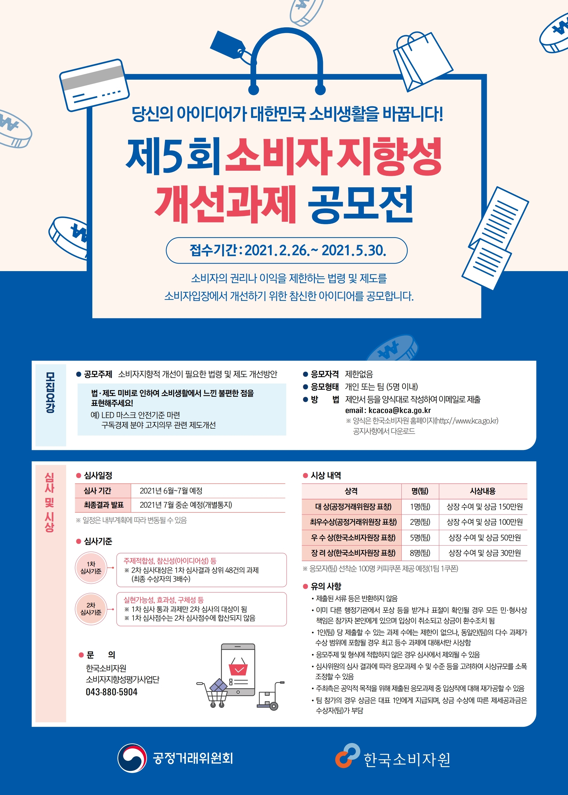 | 제목 | 한국소비자원 소비자지향성 개선과제 공모전 안내 | ||||