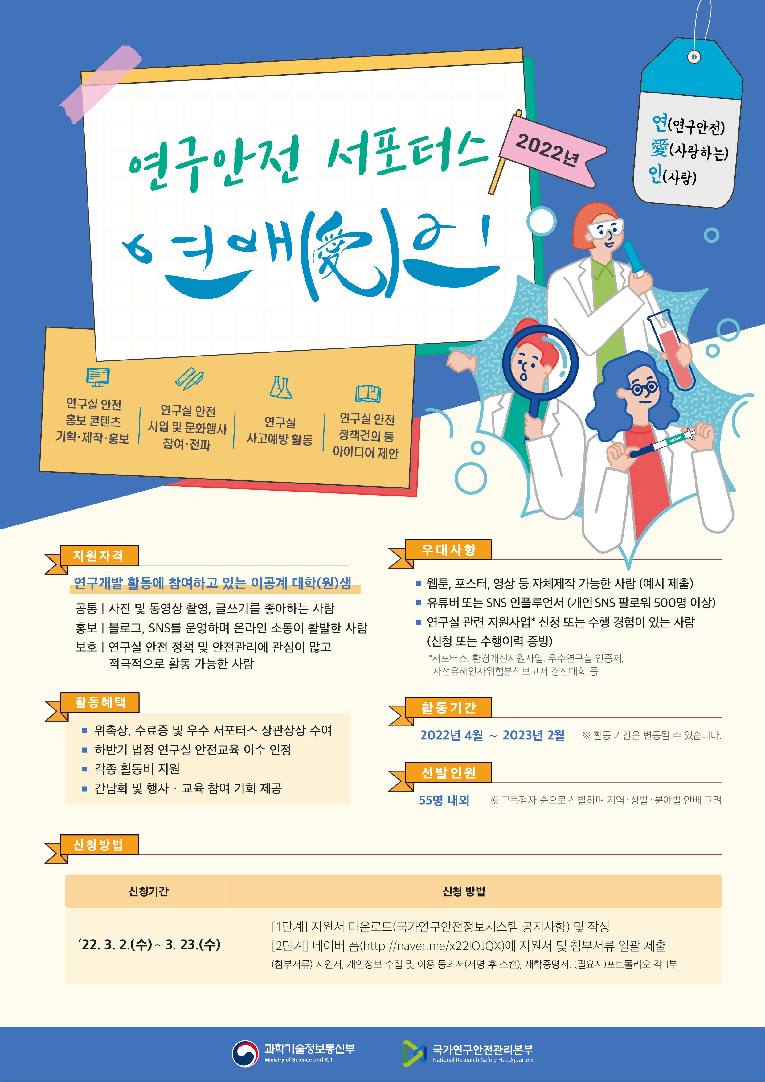 | 제목 | 2022년도 연구안전 서포터스 모집 안내 | ||||