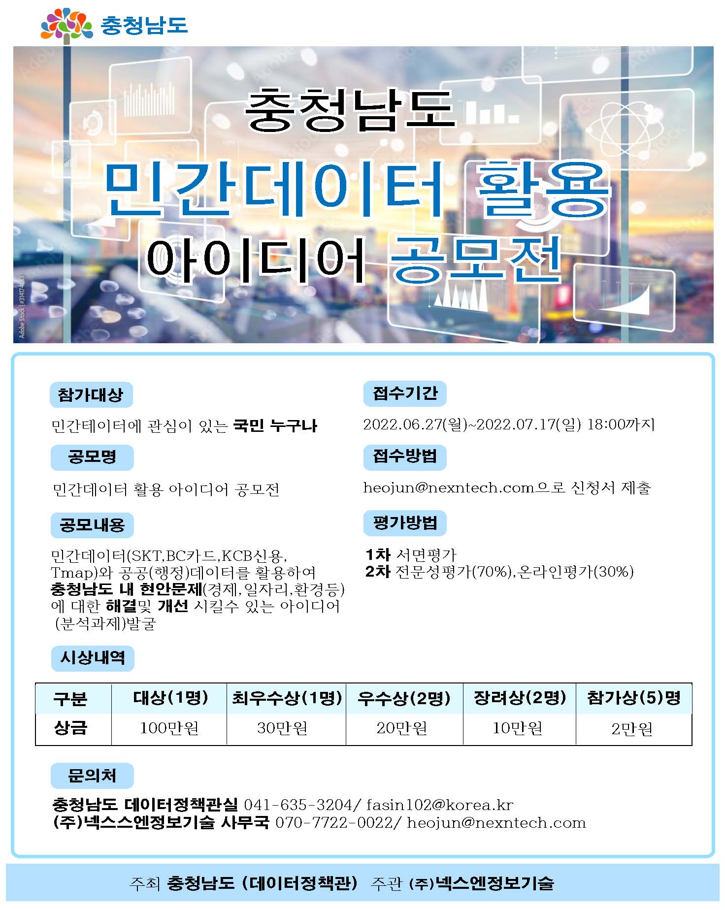 | 제목 | 충청남도 민간데이터 활용 아이디어 공모전 | ||||