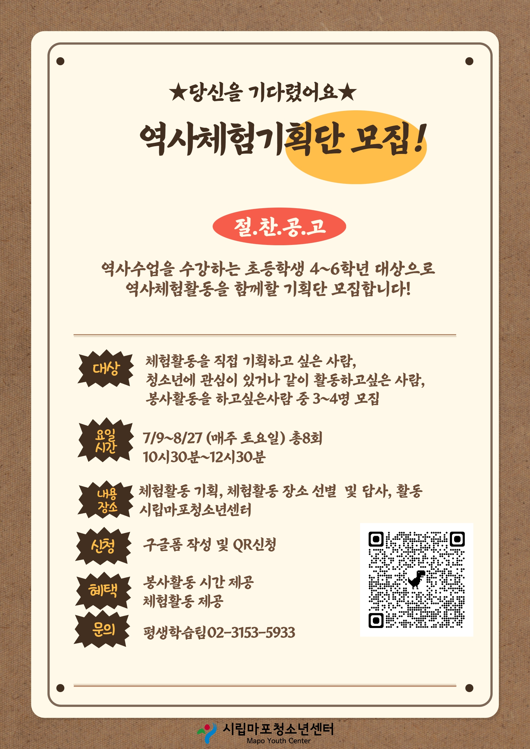 | 제목 | [시립마포청소년센터] 대학생 역사체험기획단 모집 | ||||