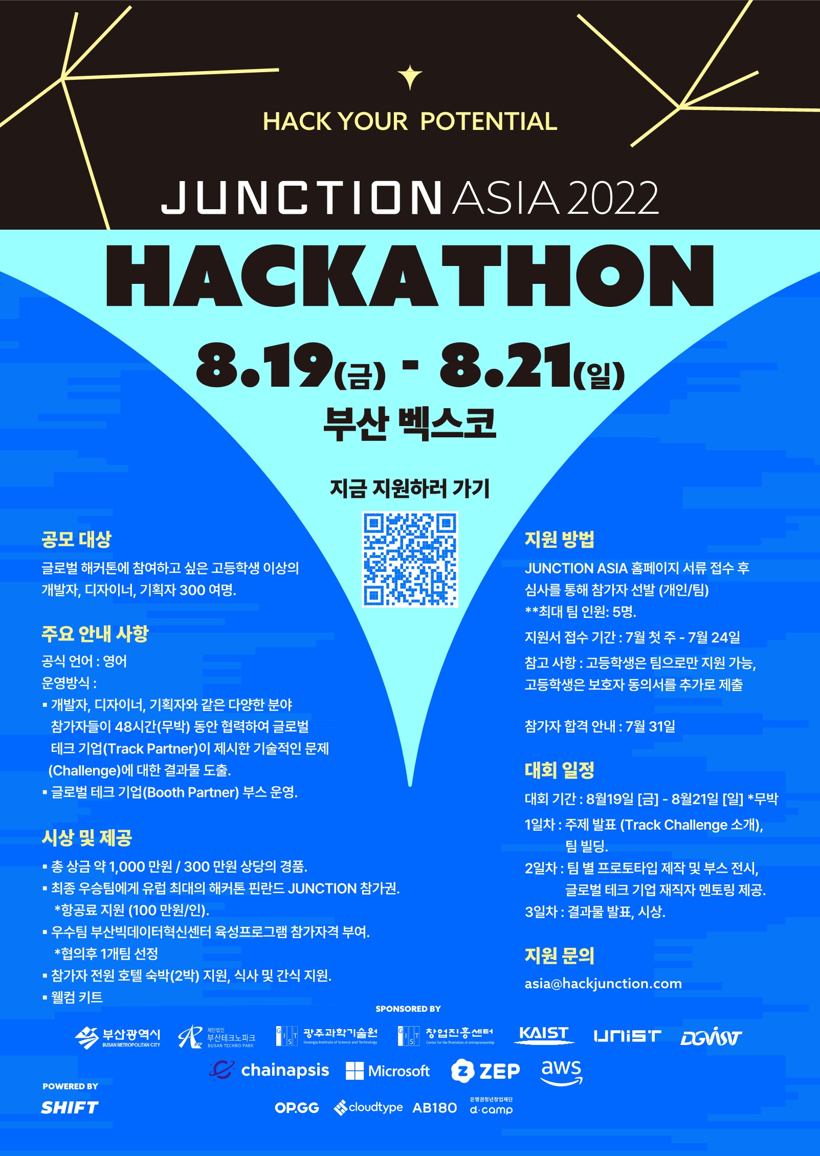 | 제목 | 글로벌 해커톤 'JUNCTION ASIA 2022' 대학(원)생 참여 홍보 | ||||