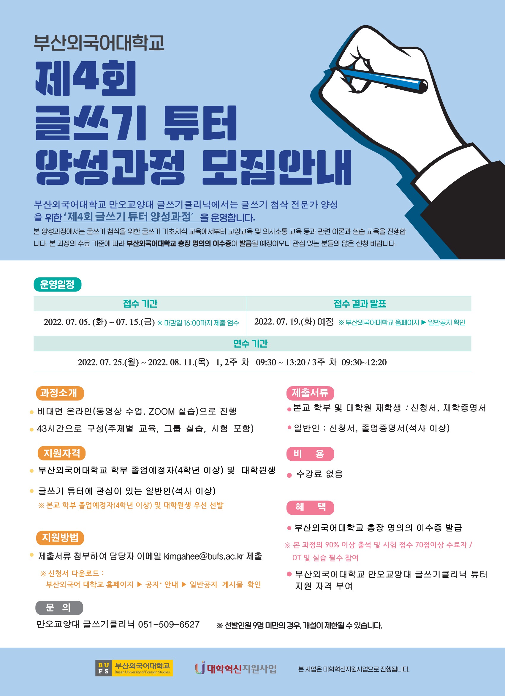 | 제목 | 부산외국어대학교 제4회 글쓰기 튜터 양성과정 모집안내 | ||||