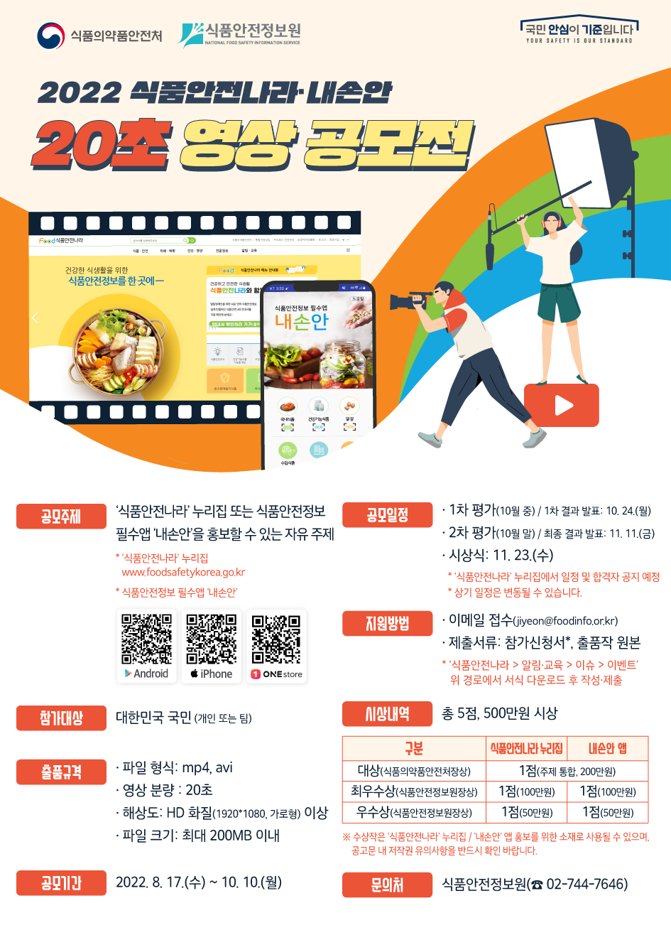| 제목 | 2022 식품안전나라·내손안 20초 영상 공모전 안내 | ||||