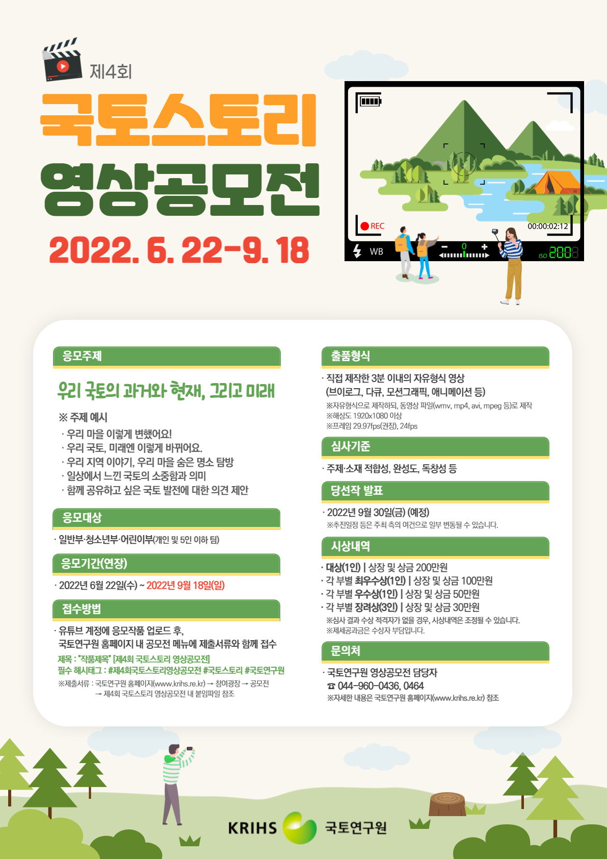 | 제목 | 제4회 국토스토리 영상공모전 응모기간 연장안내 | ||||