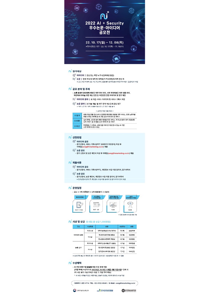 | 제목 | 2022 AI+SECURITY 우수논문 아이디어 공모전 안내 | ||||