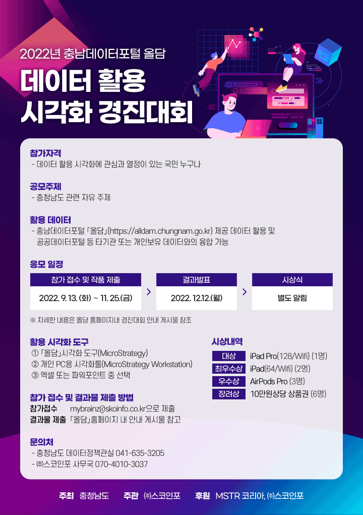 | 제목 | 충남데이터포털 「올담」데이터 활용 시각화 경진대회 참여 안내 | ||||