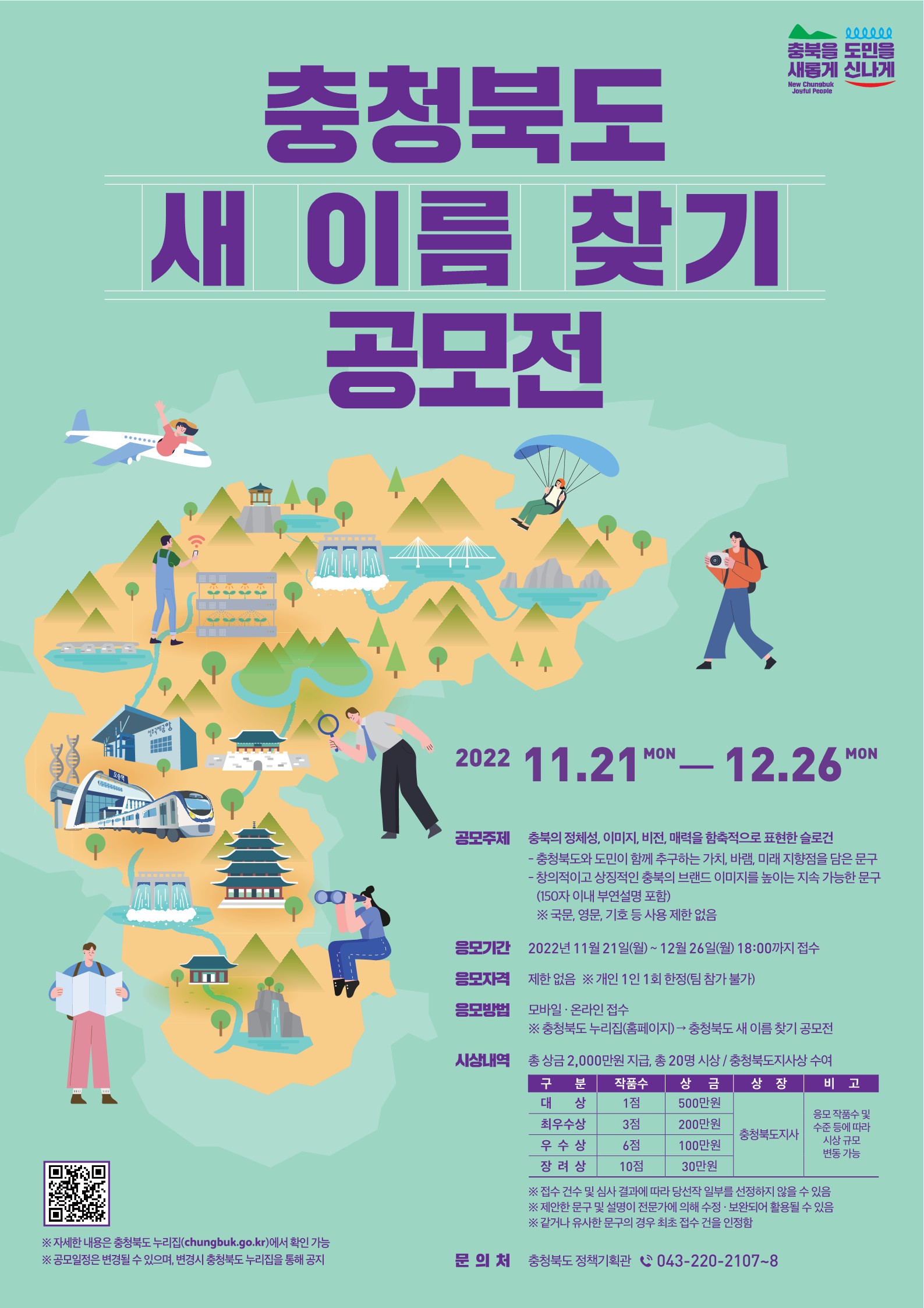 | 제목 | 대표 상징(BI, CI) 개발을 위한「충청북도 새 이름 찾기」공모전 개최 안내 | ||||