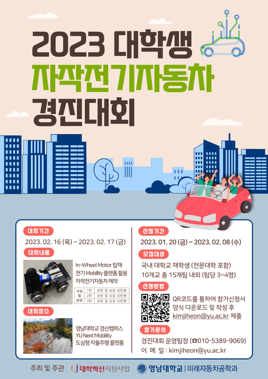 | 제목 | 2023 대학생 자작전기자동차 경진대회 개최에 따른 참가 안내 | ||||