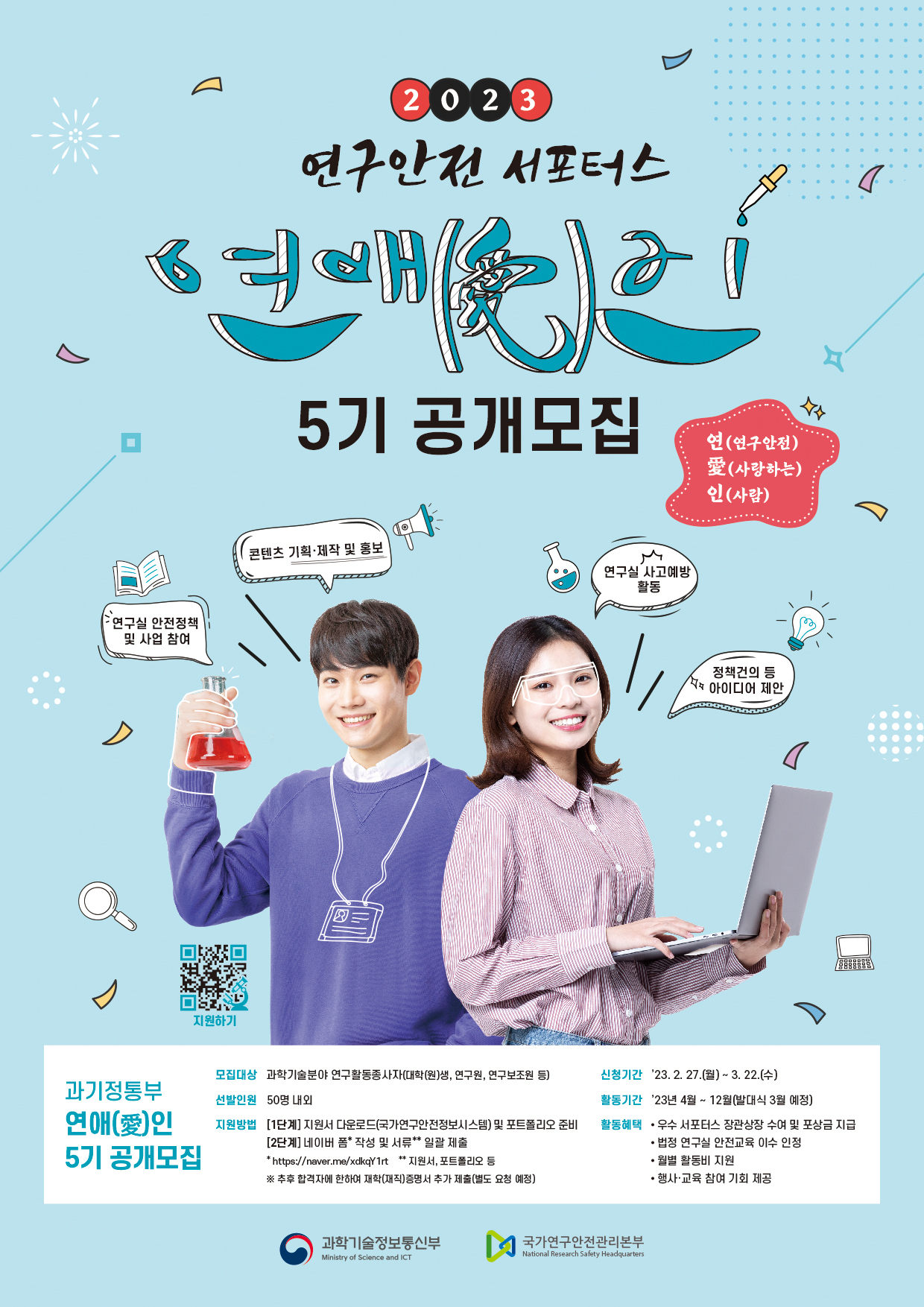 | 제목 | 2023년 과학기술정보통신부 연구안전 서포터스(5기) 모집 | ||||