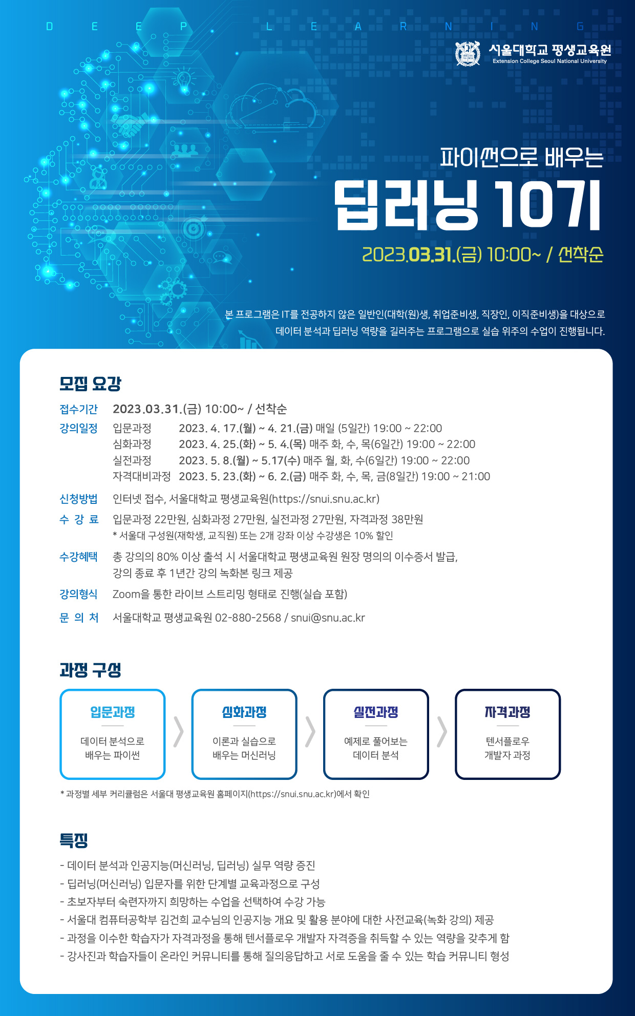 | 제목 | [서울대 평생교육원] 파이썬으로 배우는 딥러닝 과정 안내 | ||||