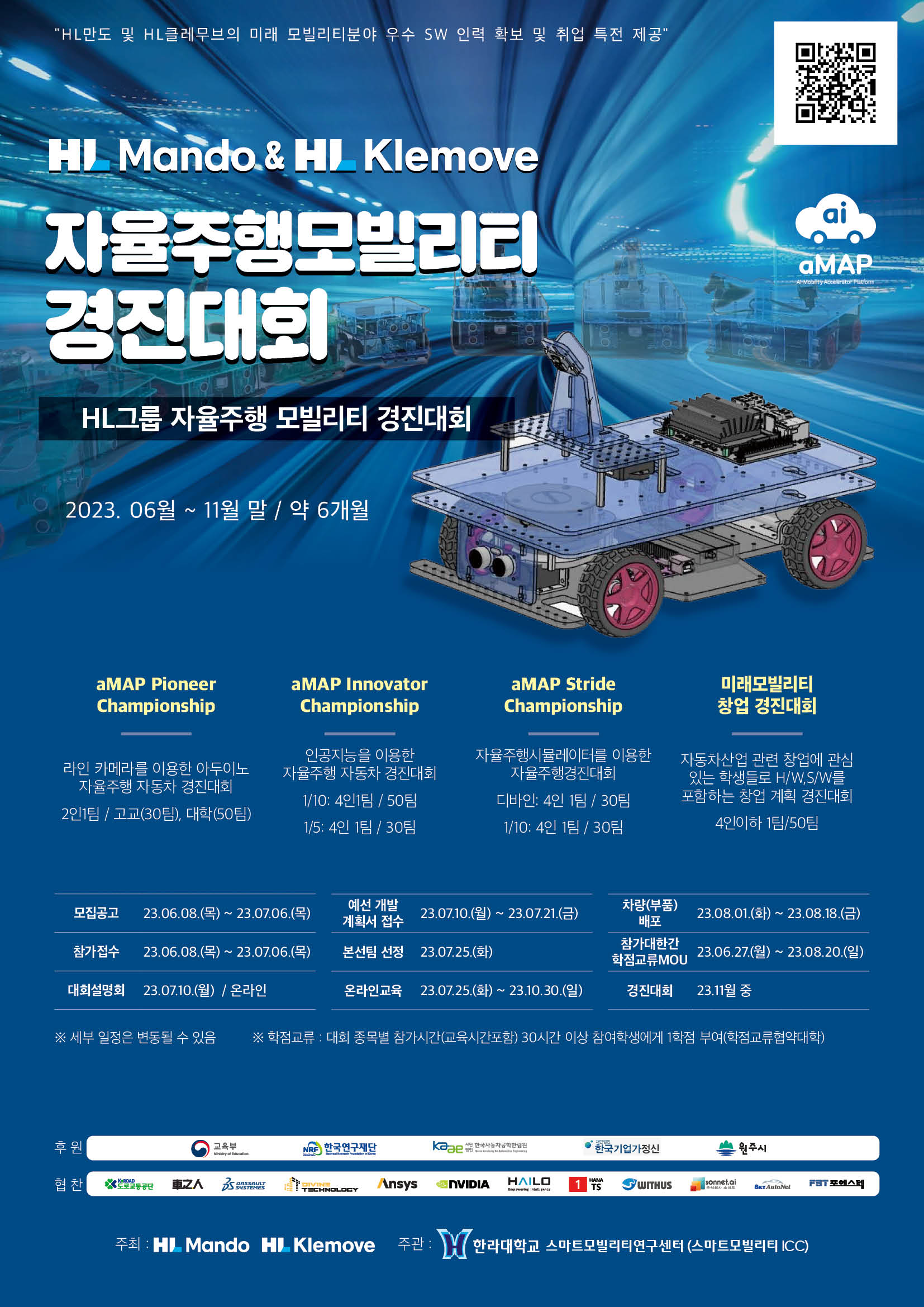 | 제목 | 2023 HL만도.HL클레무브 자율주행모빌리티 경진대회 개최 안내 | ||||