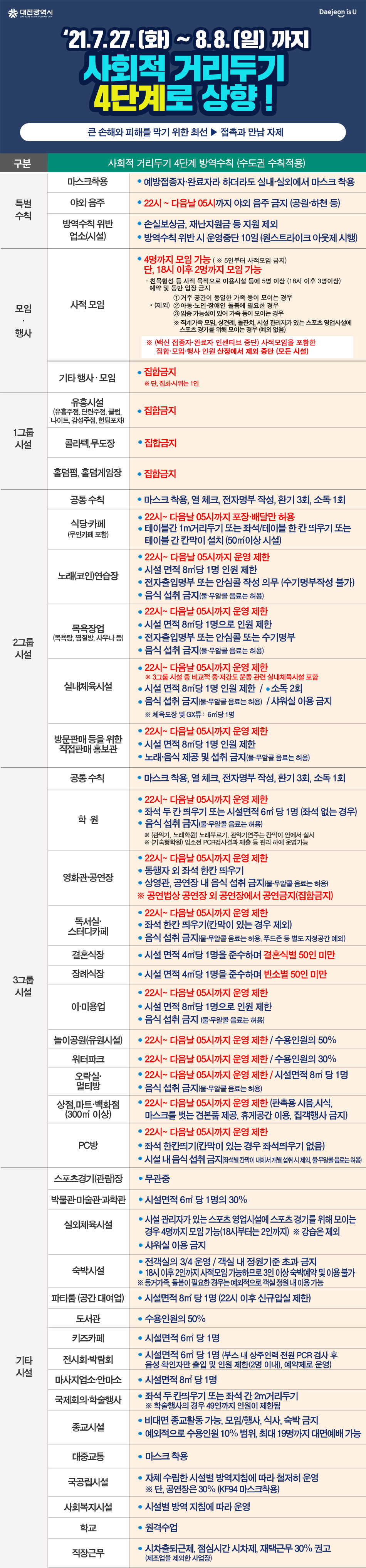 대전시 사회적 거리두기 4단계 방역 수칙 요약표(7.27_8.8).hwp