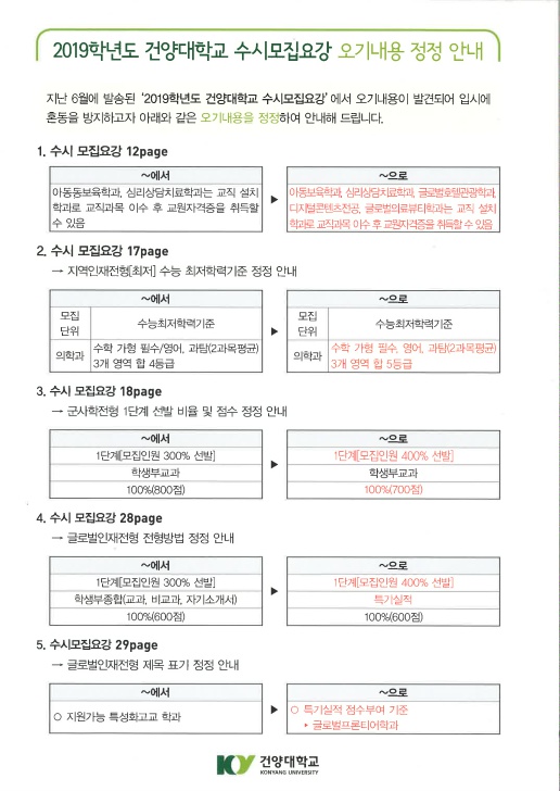 2019학년도 수시전형 모집요강에 오기사항이 발견되어 공지를 드립니다.