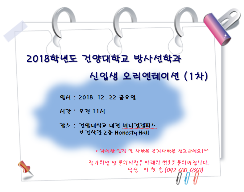 | 제목 | 2018 건양대학교 방사선학과 신입생 오리엔테이션(1차) | ||||