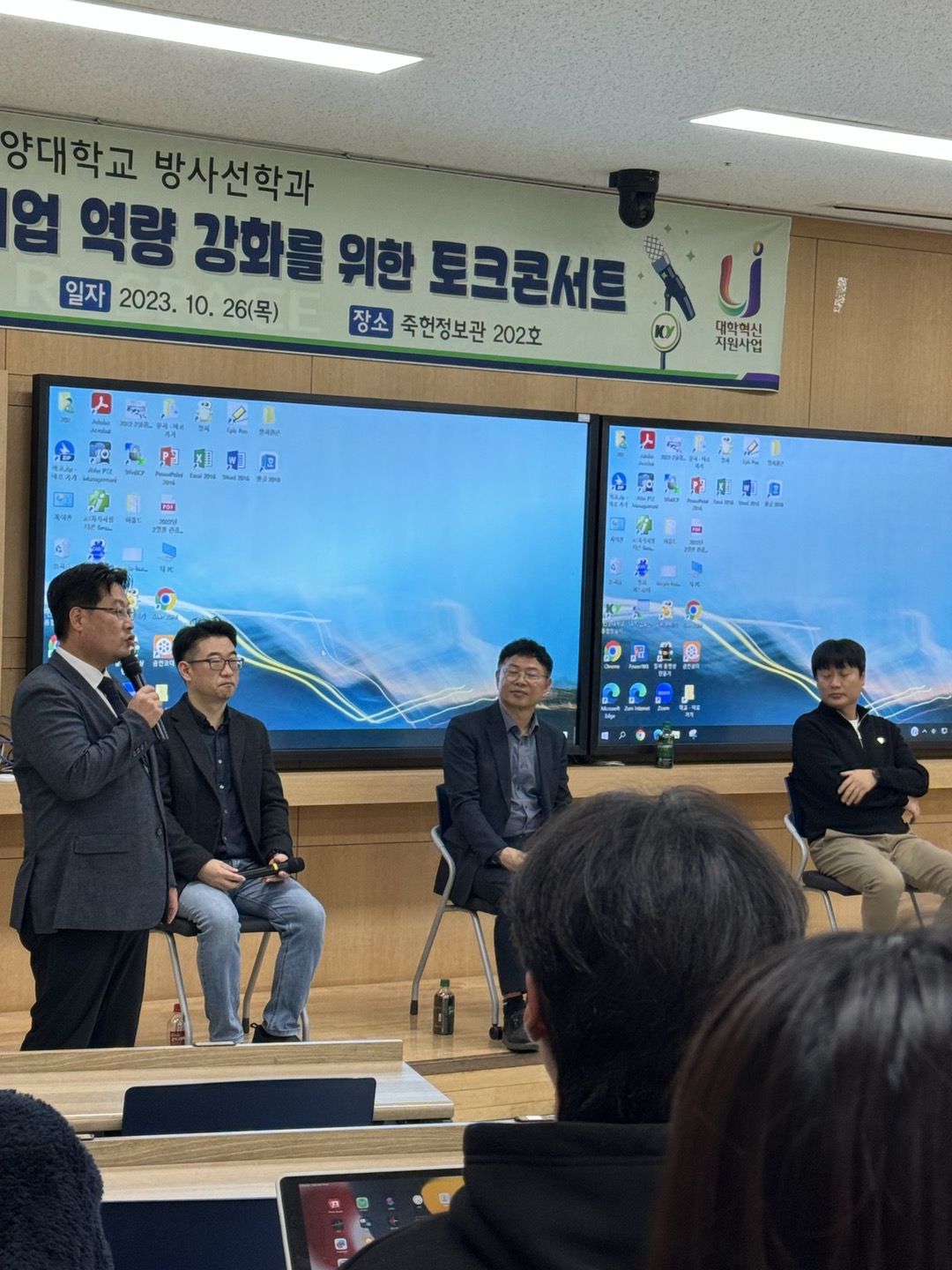 2023년 10월 26일 목요일 죽헌정보관 202호에서 취업 역량 강화를 위한 토크콘서트를 진행하였습니다.