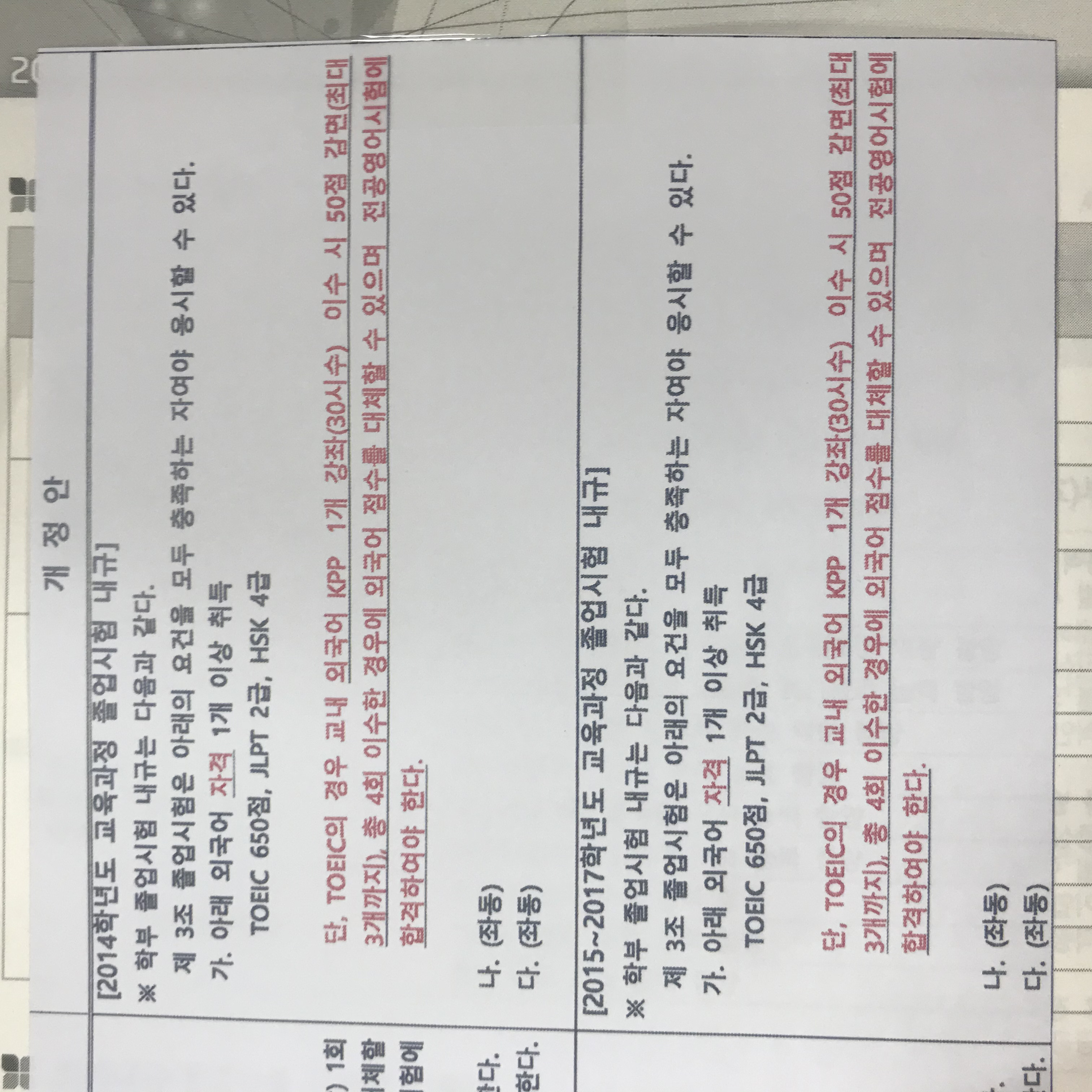 2015~2017학년도 교육과정 졸업시험 내규 개정 사항을 안내드립니다.