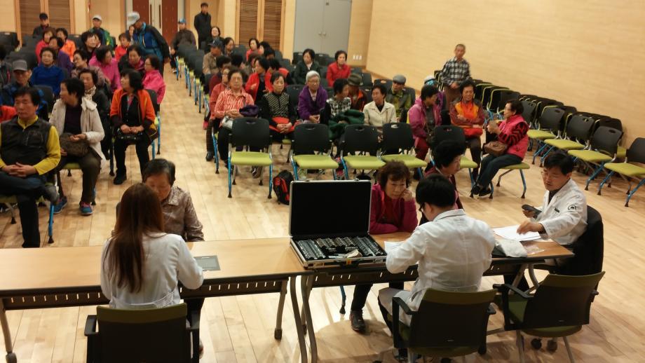5일 유등노인복지관 대강당에서 검안봉사활동하는 모습.jpg