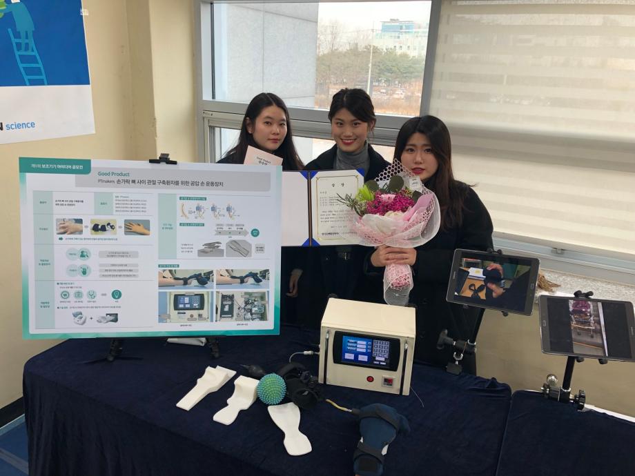 보조기기 아이디어 공모전에서 우수상을 수상한 건양대 물리치료학과 학생들.jpg