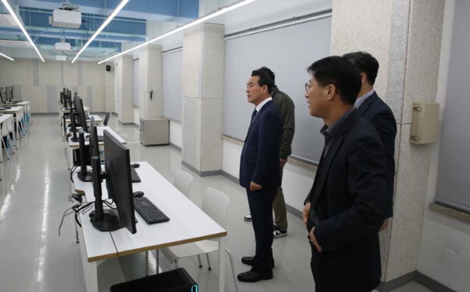 백 시장은 이날 건양대 반도체공학과 교육시설 및 장비를 살펴보는 한편 재학생들 수업에도 참과하는 등 반도체공학과에 대한 깊은 관심을 나타냈다.