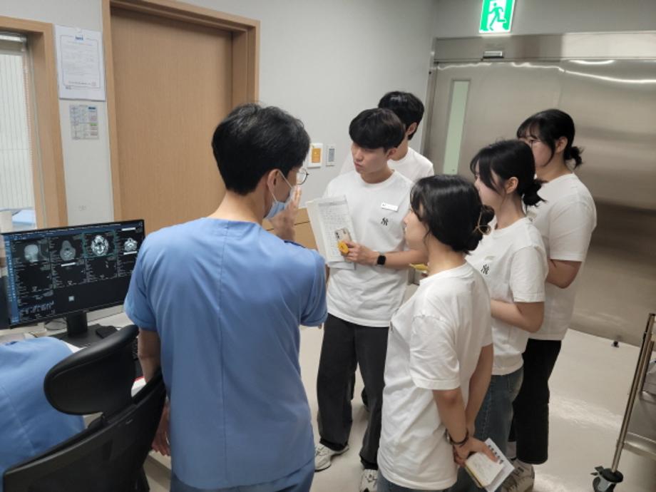 건양대가 23일부터 28일까지 진행한 보건·의료분야 다직종연계교육프로그램인 ‘제3회 KY리더스캠프에서 학생들이 건양대병원에서 실습하는 모습 2.jpg