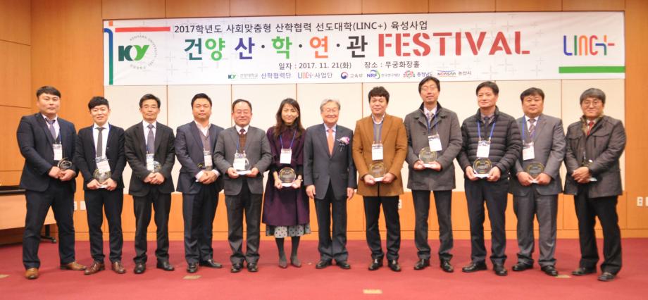 건양대학교(총장 정연주) 링크플러스 사업단(단장 김영일)이 21일 오후 건양대 논산 창의융합캠퍼스 명곡정보관에서 ‘도약하는 기업, 상생하는 대학‘이라는 주제로 <2017 건양 산·학·연·관 페스티벌>을 성대히 개최했다.