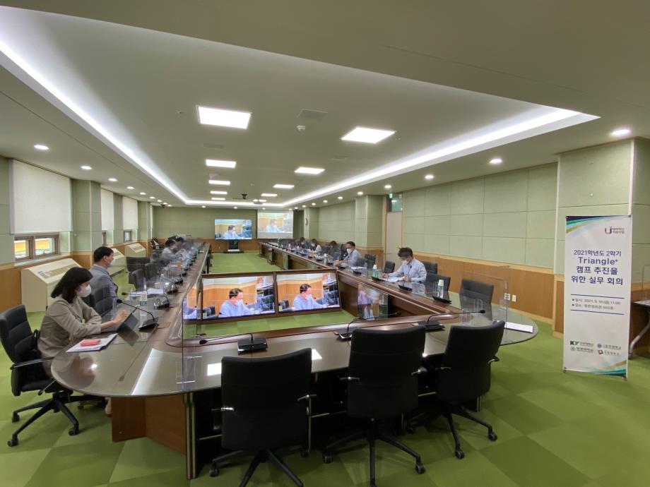 이날 실무회의는 건양대 강현식 팀장, 한밭대 양혜련 책임연구원, 원광대 최유순 교수, 공주대 김응범 연구원 등과 각 대학 사업단 관계자들이 참석한 가운데 진행됐다. 이번 실무회의를 통해 기존 Triangle+ 캠프에 대한 전반적인 추진 목표를 재차 확인하고 학생 중심의 프로그램 성과를 제고할 수 있는 방안을 마련하는 등 학생들에게 참여 기회를 확대 하고자 다양한 의견들을 논의했다. 정주현 사업단장은 “매년 추진되는 프로그램의 한계를 극복하고 개선하여 지역대학 학생들이 보다 질 높은 교육을 받을 수 있는 계기를 마련하는 첫 단추가 되었으면 한다”라고 전했다.