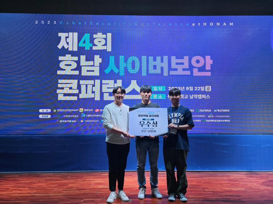 | 제목 | 건양대 스마트보안학과, 2023 호남 사이버보안 컨퍼런스에서 보안취약점찾기 대회 우수상 | ||||