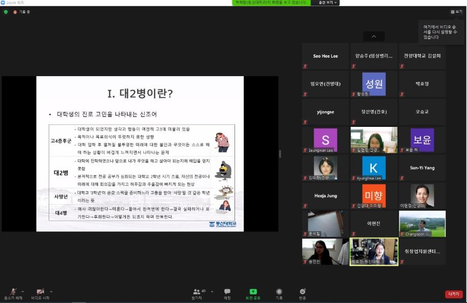 ’중2병보다 무서운 대2병 지원을 위한 진로전략‘이라는 주제로 동신대학교 학생상담센터장 박희현 교수가 특강자로 나선 이번 세미나는 코로나19 상황을 고려하여 비대면 방식(ZOOM)으로 진행되었으며, 하계방학임에도 60여명의 교원이 참여했다.