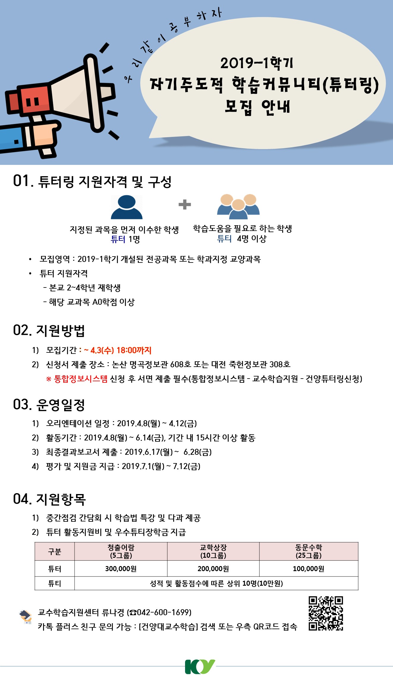 | 제목 | 2019-1학기 자기주도적 학습커뮤니티(튜터링) 모집 안내 | ||||