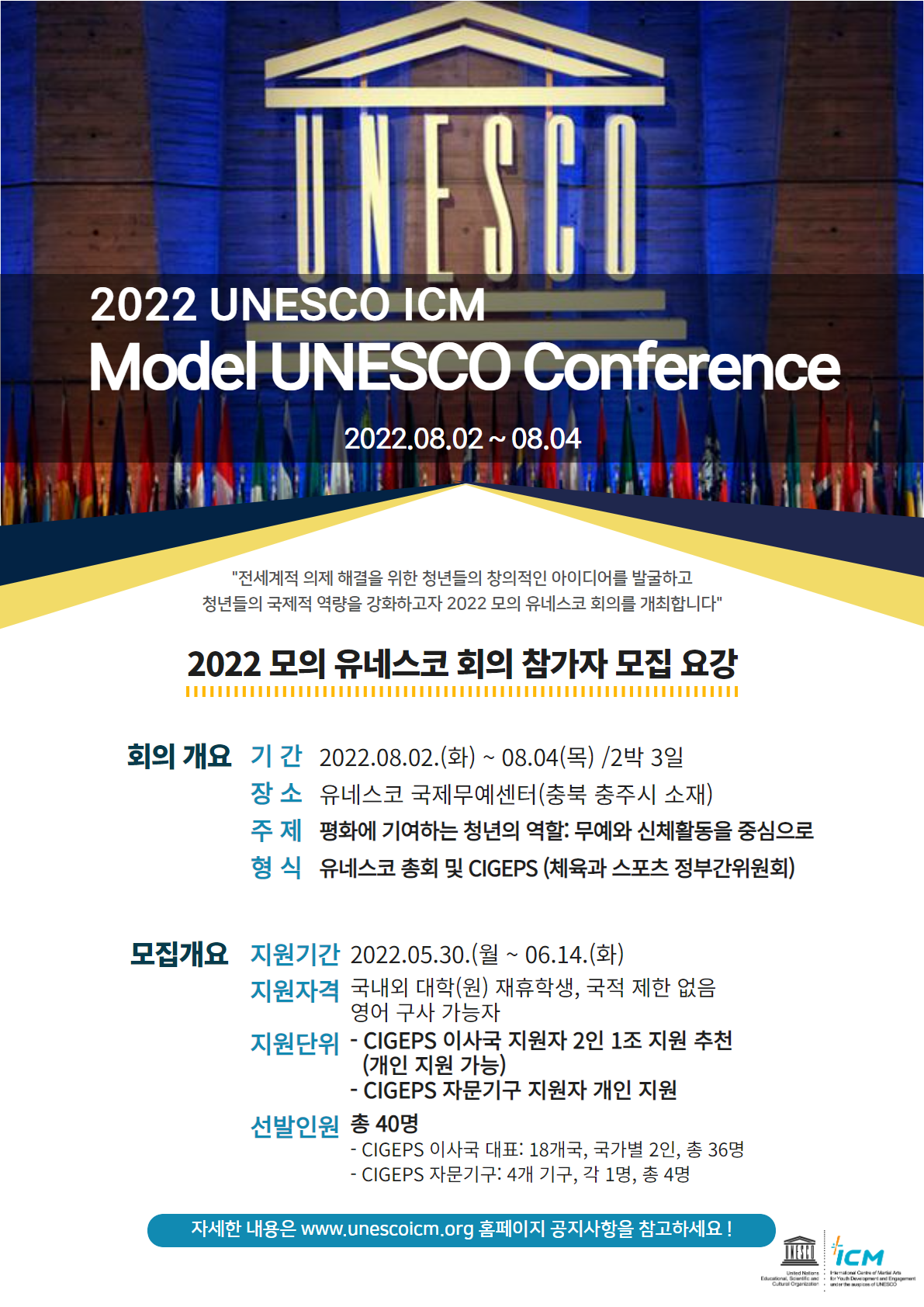 | 제목 | 2022 모의 유네스코 회의 참가자(대표단) 모집 안내 | ||||