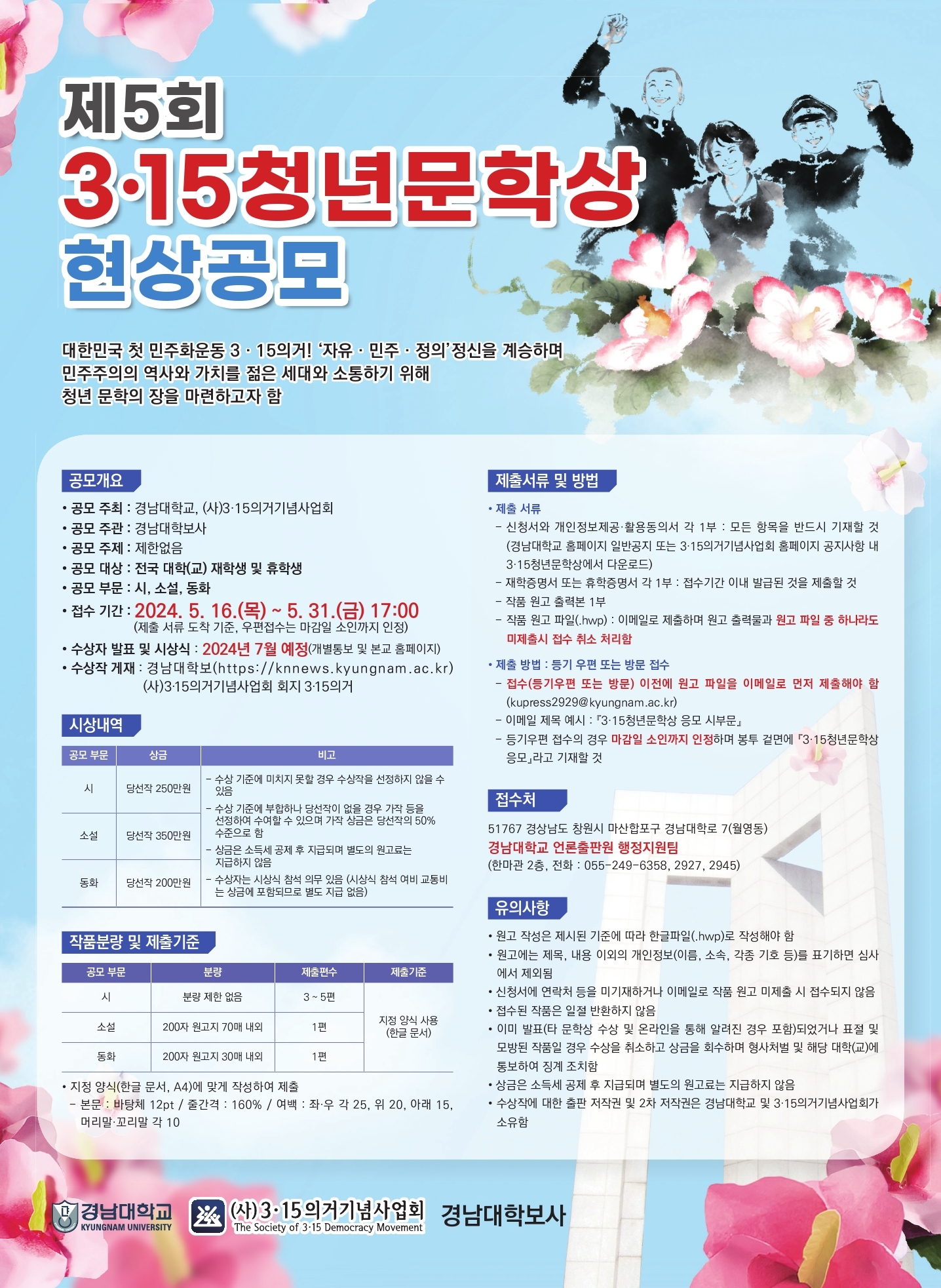 | 제목 | 제5회 3 15청년문학상 현상 공모전 개최에 따른 홍보 | ||||