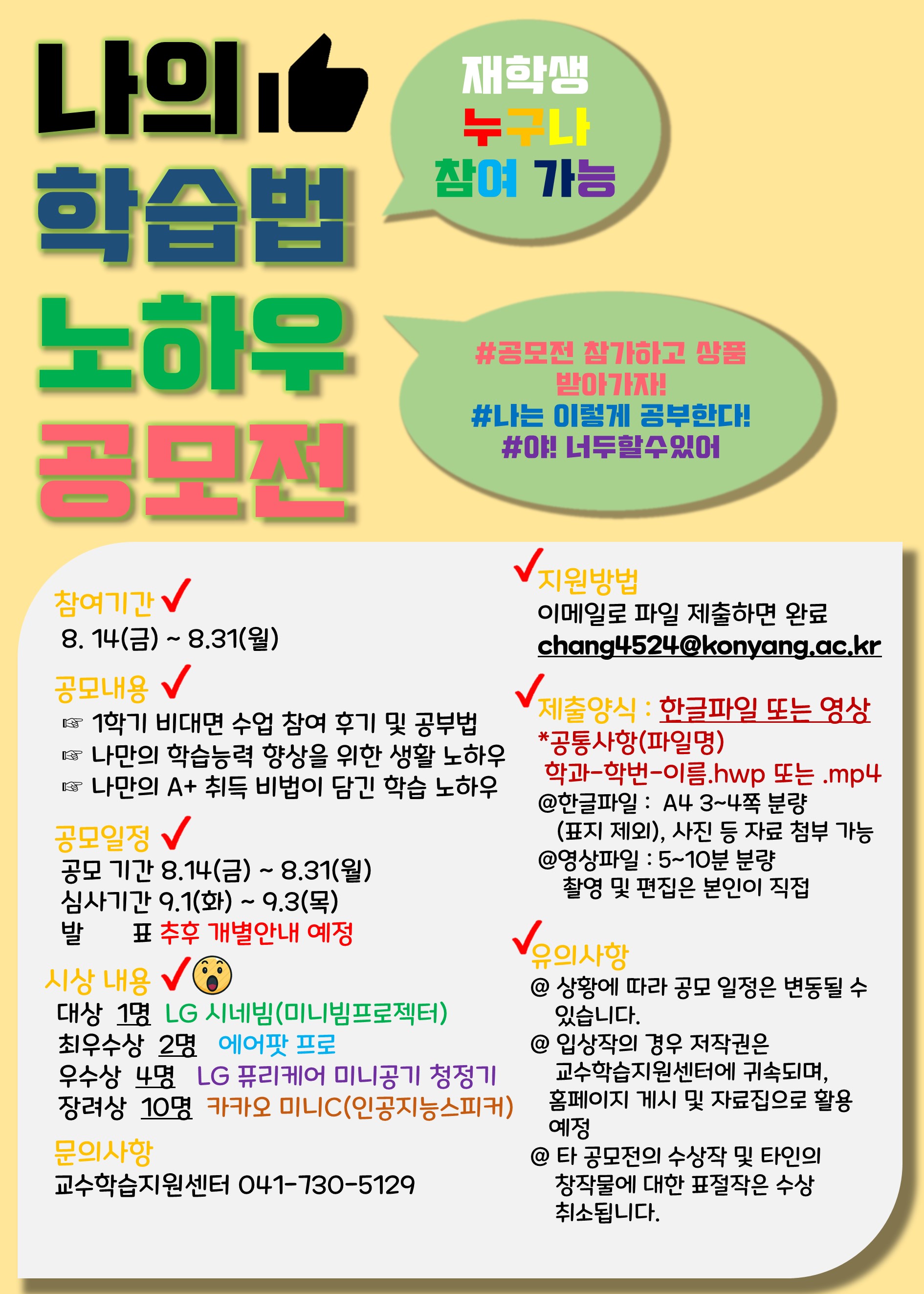 | 제목 | 2020학년도 비대면 수업사례 공모전 운영 | ||||