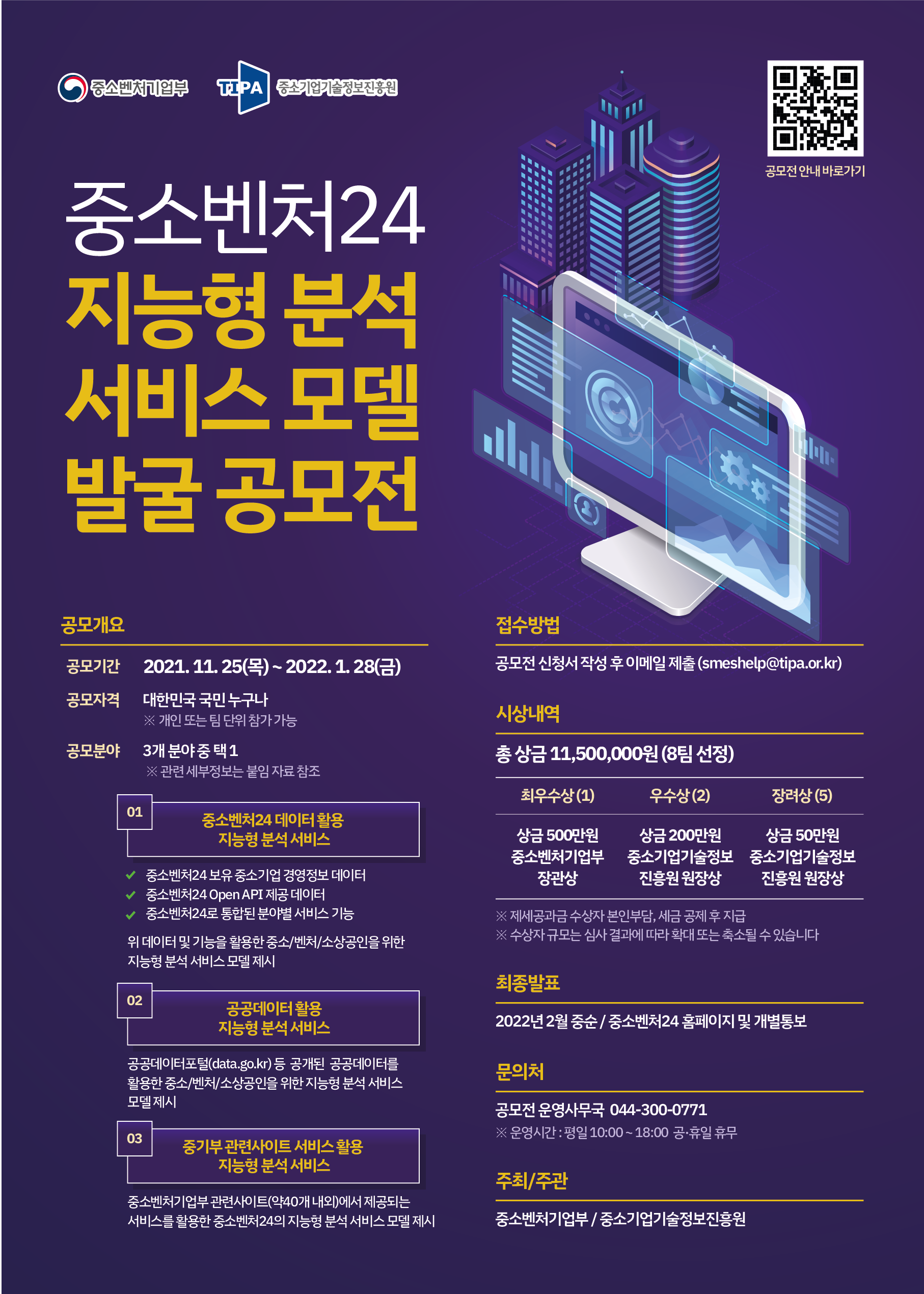 | 제목 | 중소벤처24 지능형 분석 서비스 모델 발굴 공모전 | ||||