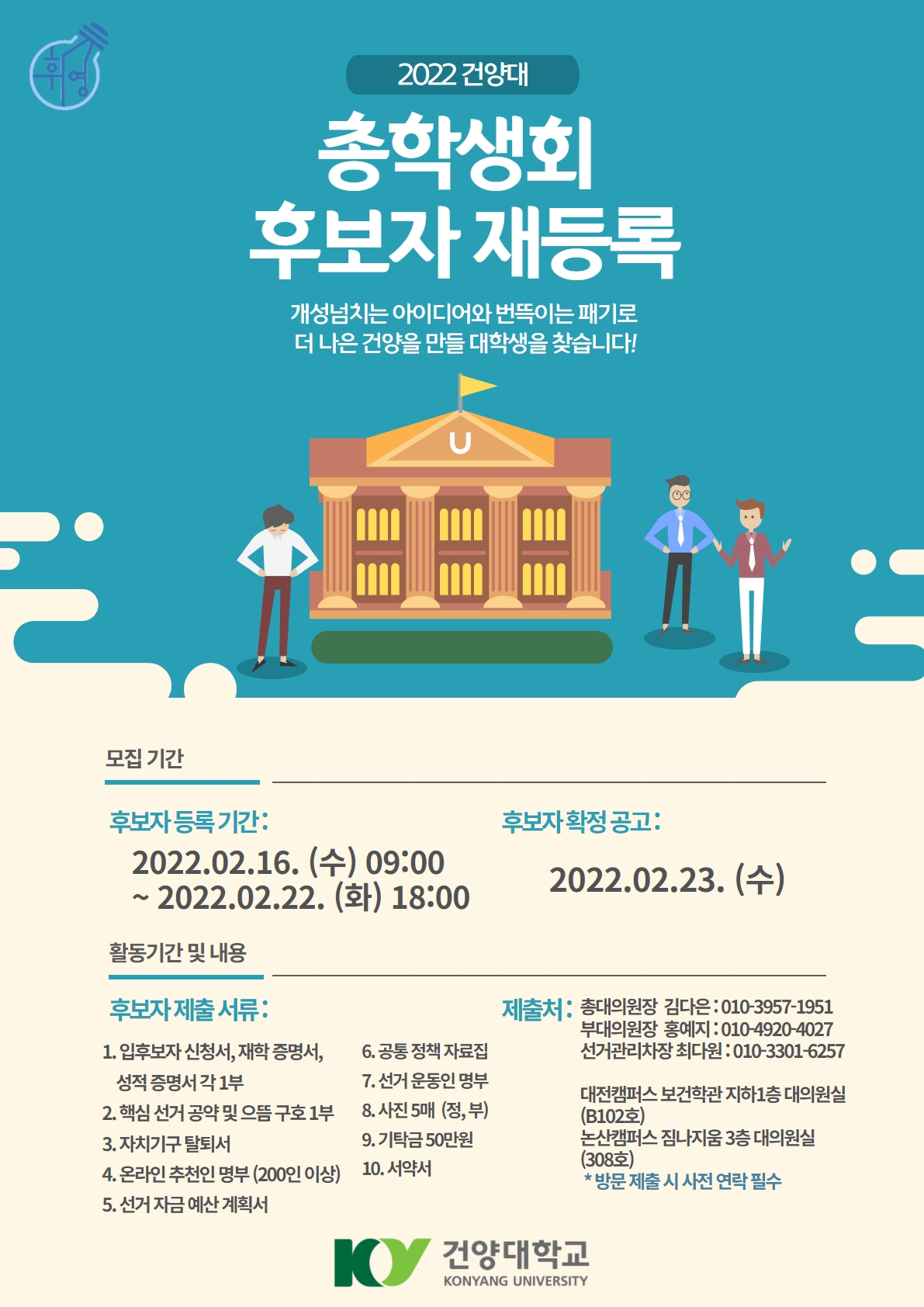 | 제목 | 2022학년도 총학생회 후보자 재등록 안내 | ||||