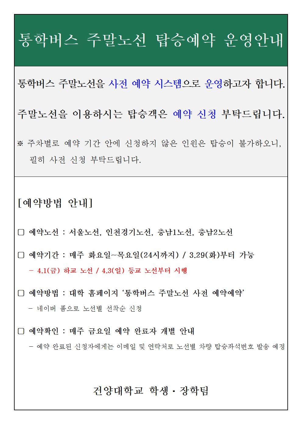 | 제목 | 통학버스 주말노선 탑승예약 운영 안내 | ||||