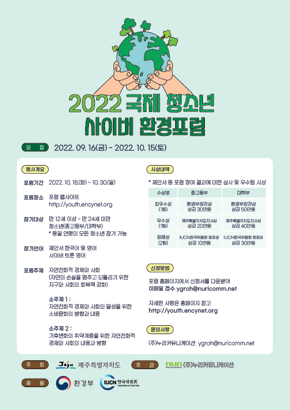 | 제목 | 2022 국제청소년 사이버환경포럼 참가 안내 | ||||