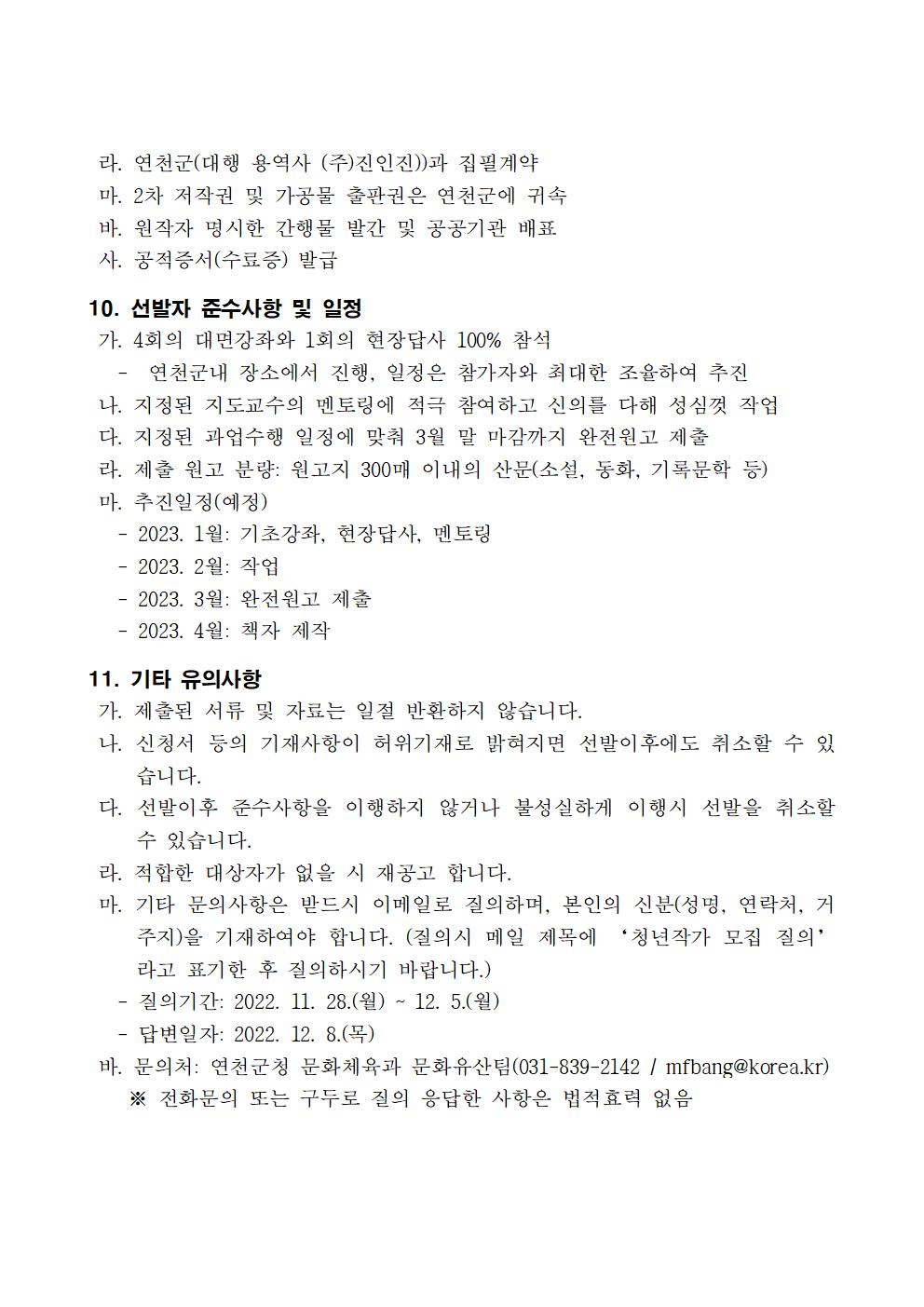 | 제목 | 연천군 스토리텔링 청년작가 모집 안내 | ||||