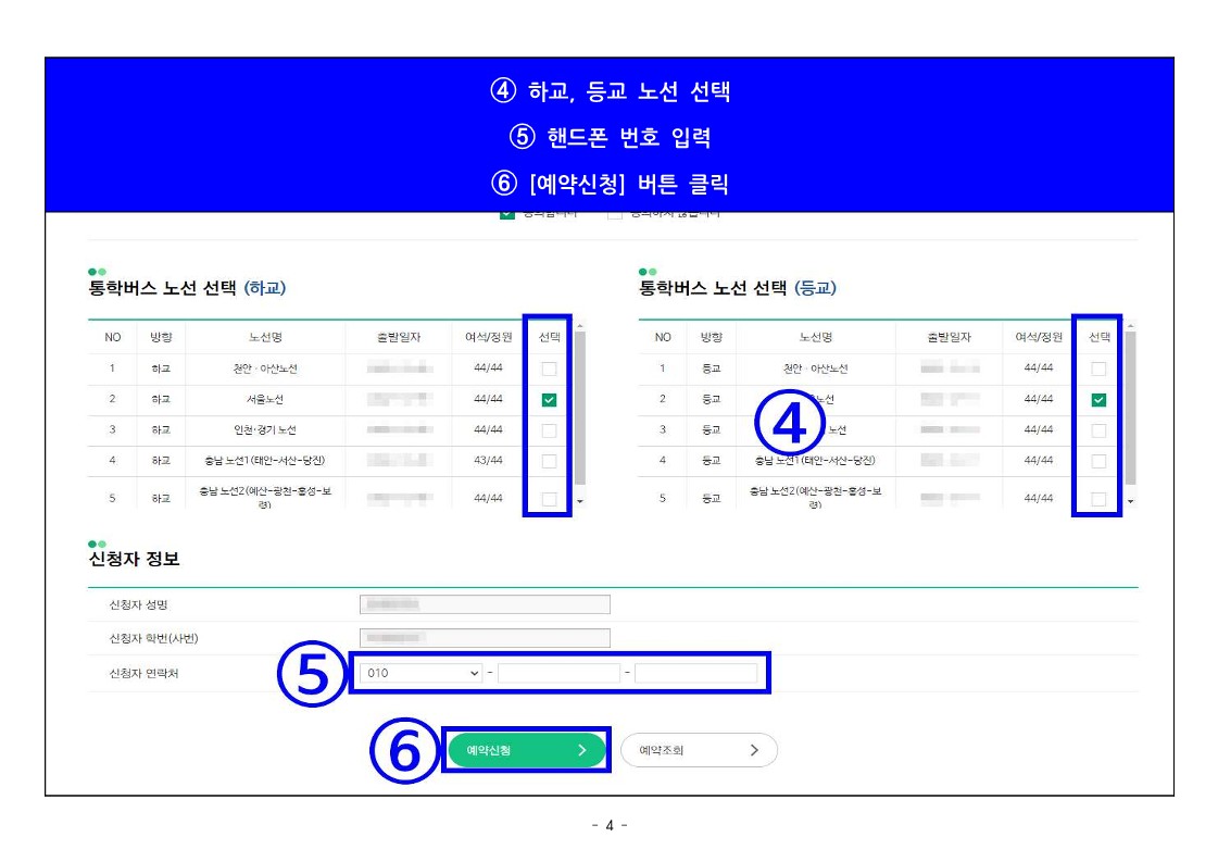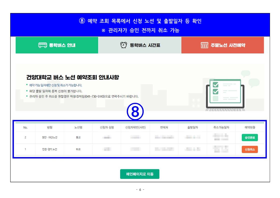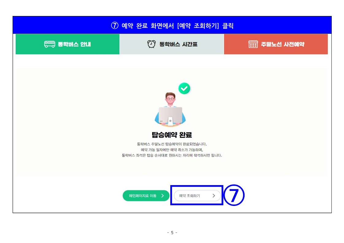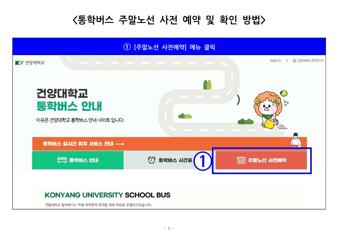 통학버스 주말사전 예약 방법이 홈페이지를 통해서 예약 및 예약확인 방법으로 변경하였습니다. □ 예약방법 변경 : 2022.12.06(화)부터 홈페이지 '주말노선 사전예약'을 통해 예약신청
