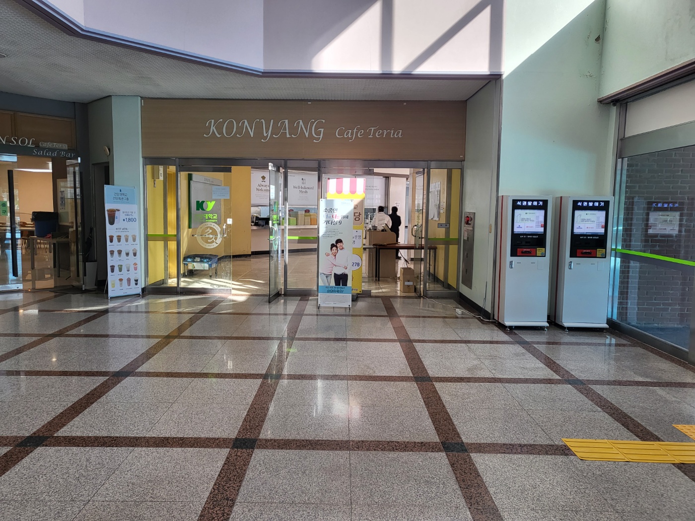 1. 신규 오픈 일시 : ‘23.2.28.(화) / 28일은(입학식날은) 백반코너만 운영 2. 식권 구입 가능 일시 : ’23.2.27.(월) - 신학기 첫날 구입 할 경우 많은 학우 여러분들의 이용으로 인하여 웨이팅이 생길 수 있으니, 이용을 원하시는 학우 여러분께서는 미리 구입 부탁드립니다. (2.27일부터 건양회관 식당에서 구입가능합니다.) 3. 식사시간 - 조식 : 08:00 ~ 09:00 - 중식 : 11:30 ~ 13:30 - 석식 : 17:00 ~ 18:00