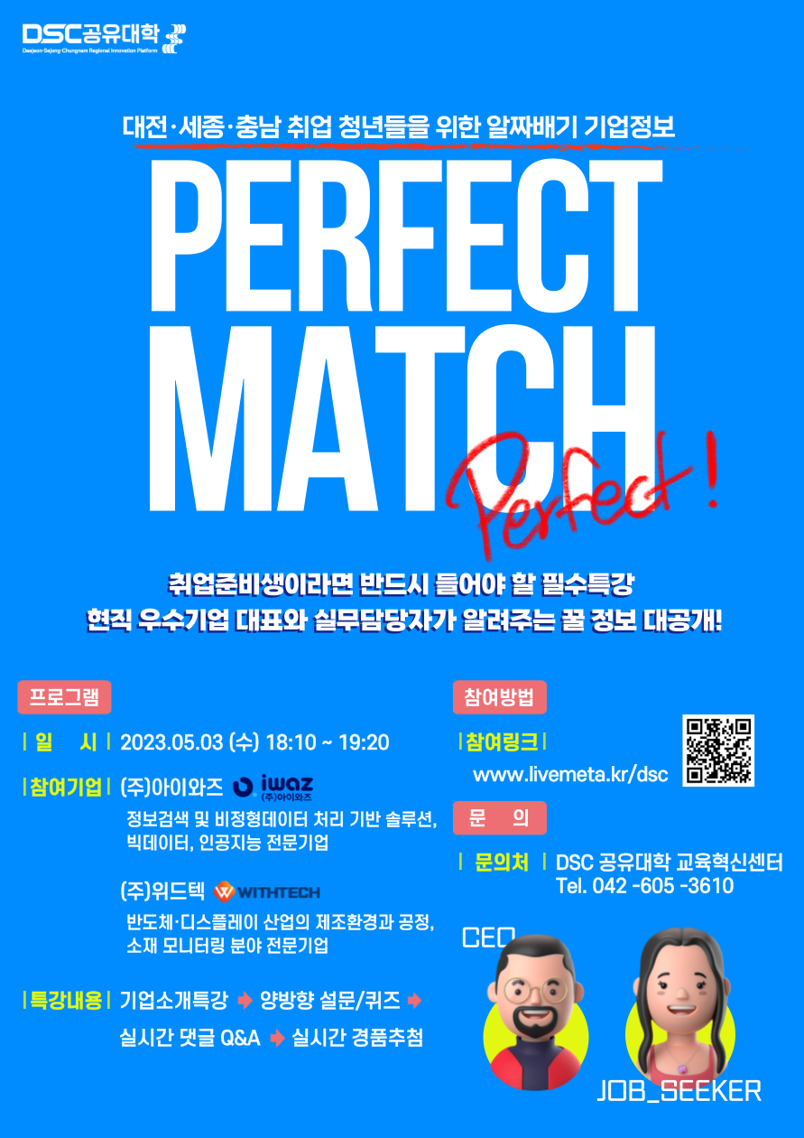 | 제목 | [DSC 공유대학] 2023학년도 DSC 공유대학 「산업체 인사특강: Perfect Match」안내 | ||||